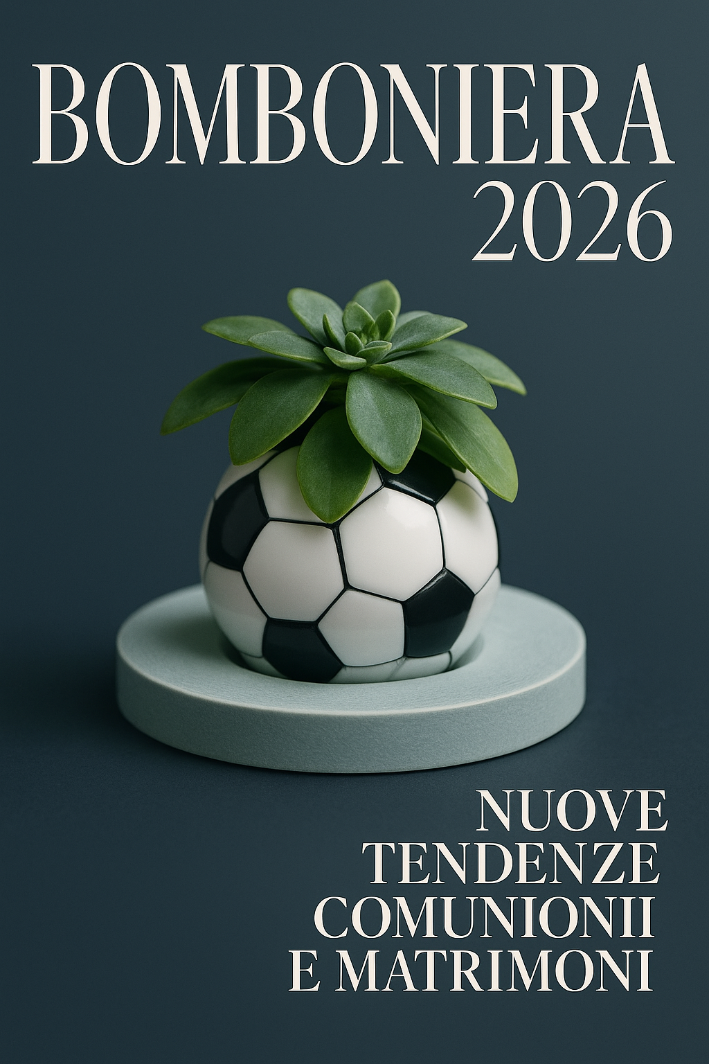 Novita’ 2026-Pallone colcio con pianta vera, base della bomboniera Che ha una base di cm 7 e alta 6 cm